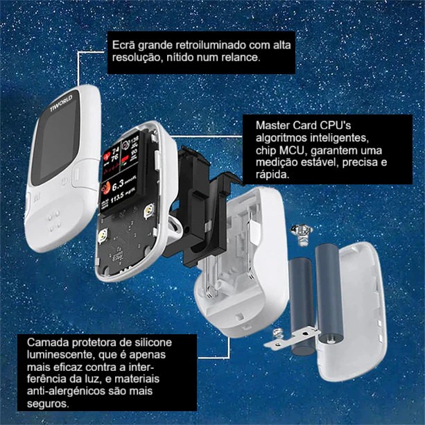 O Medidor de Glicose Não Invasivo conta com a qualidade e tecnologia Tiworld™.